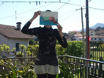 Para terminar, e em jeito de “Diário de Bordo”, deixo aqui para vós o estudo final da ilustração, a ilustração finalizada em papel… e… algumas fotografias do seu lado B - que era nada mais nada menos do que um saco de pano com a referida ilustração em versão a preto e branco :)